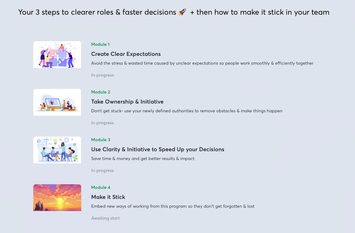 This Team Clarity & Faster Decision-Making Program is the first and foundational course in the Effective, Empowered and Evolving Teams series.
